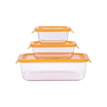 تاليونا طقم حاويات زجاجية مستطيلة مع غطاء - برتقالي، 3 قطع