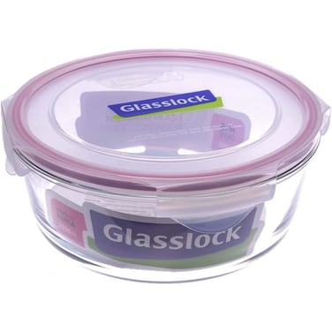 غلاسلوك حافظة طعام زجاجية دائرية - شفافة/وردية سعة 2 لتر