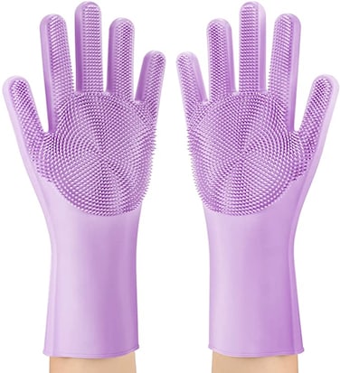ZALCOON Dishwashing Sponge Gloves for Kitchen ,Silicone Gloves Reusable Rubber Cleaning Gloves ,Silicone Dishwashing Scrubber Glove
