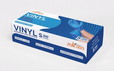 Zalcoon Vinyl Blue Pre-Powder Gloves- Small 100/Pack