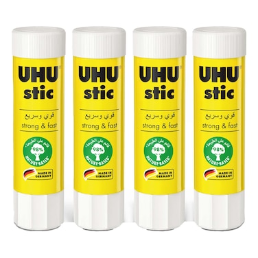 تتكون مجموعة عصي الصمغ من يو أتش يو من أربعة عصي غراء بوزن إجمالي 40 غرامًا.