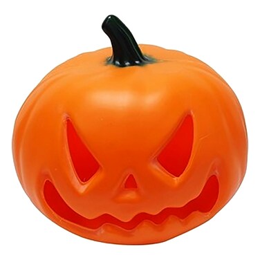 يتميز هذا اليقطين المزخرف بلون برتقالي نابض بالحياة مع لمسات سوداء، مما يمنحه مظهرًا كلاسيكيًا للهالوين. كما يضيء اليقطين، مما يضيف توهجًا غريبًا إلى عرض الهالوين الخاص بك.