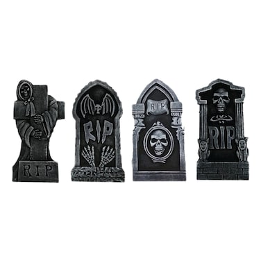 كل شاهد قبر مصنوع من البلاستيك الرمادي المتين ويتميز بملمس حجري واقعي. إنها سهلة الإعداد ويمكن وضعها في الفناء الخاص بك أو إستخدامها كديكور داخلي .