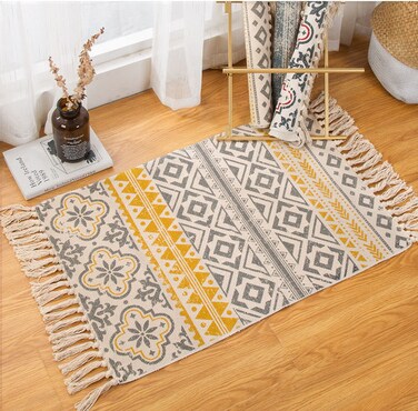 Ethnic Style Handwoven Tassel Carpet For Living Room Bedroom (Size 60×90CM)