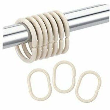 24 PCS Shower Curtain Rings Plastic Shower Curtain Hooks for Bathroom Shower Rod - Beige