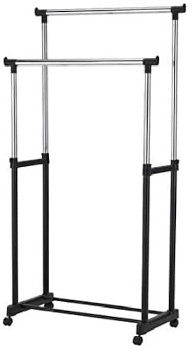 علاقة ملابس دورين بعمودين ، شماعة ملابس تلسكوبية بعمود مزدوج ، اسود