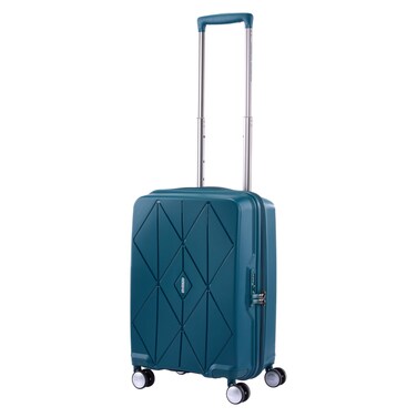حقيبة السفر الصغيرة ذات الأربع عجلات والقشرة الصلبة من أمريكان توريستر أرغايل باللون الأخضر الداكن هي الرفيق المثالي للسفر.