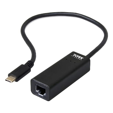 بورت كونكت محول من نوع C إلى RJ-45 باللون الأسود هو جهاز مدمج ومريح يتيح لك ربط أجهزتك التي تحتوي على منفذ USB نوع C بشبكة إينترنت.
