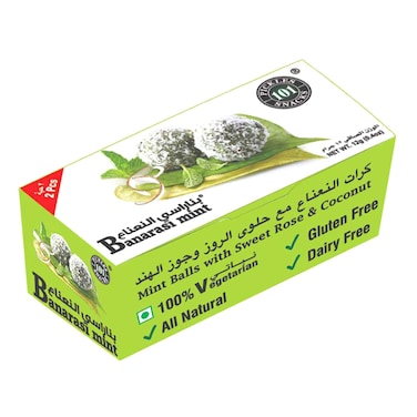 • تزن كل عبوة من كرات النعناع من باناراسي 12 غرامًا، وهي مثالية للوجبات الخفيفة أثناء التنقل