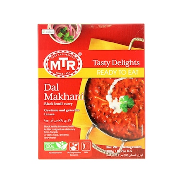 • طبق الدال ماخاني من شركة أم تي آر هو مزيج لذيذ من العدس الأسود المطهو في الزبدة ليمنحك صلصة غنية بالنكهة والقيمة الغذائية