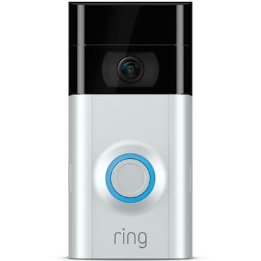جرس الباب الذكي رينغ بالفيديو 2 باللون الأسود والفضي هو جهاز أمان منزلي أنيق وحديث.