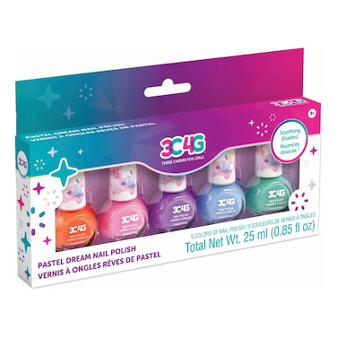 مجموعة طلاء الأظافر بألوان الباستيل من ميك إت ريل 3C4G تتضمن خمس قارورات بحجم 25 ملل من طلاء الأظافر من ألوان الباستيل الجميلة.