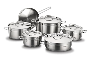 Upgrade your cooking with this premium 11-piece stainless steel cookware set by Korkmaz. Designed for your convenience and healthy cooking, this non-toxic and induction safe cookware set includes pots and pans that are perfect for all your cooking needs. The extra thick stainless steel handles and knobs with cool touch technology ensure safe and comfortable handling, while the triplex heavy bounded capsule bottom ensures even heat distribution for perfectly cooked meals. With its streamlined design, this cookware set effectively inhibits food from getting contaminated, ensuring a healthier cooking experience. Its high polished exterior surfaces add a modern and attractive look to your kitchen, while the fade-proof construction resists stains and facilitates easy cleaning for long-lasting use. Invest in this non-toxic, induction safe, and non-stick pots and pans set and elevate your cooking experience today!