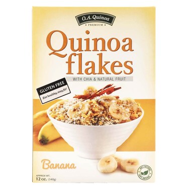 أو.أي كينوا خالية من غلوتين رقائق الكينوا بالشيا والفواكه الطبيعية 340 غرام