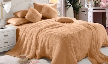 طقم لحاف فرو صناعي 6 قطع من كومفي - بيج