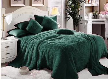 طقم لحاف فرو صناعي 6 قطع من كومفي - اخضر داكن