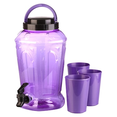 هذا الموزع مصنوع من البلاستيك المتين بسعة 4 لتر مما يسمح لك بتخزين كمية كبيرة من السوائل. تأتي مع ثلاثة أكواب مما يجعلها مثالية للحفلات والنزهات أو أي تجمع آخر حيث يحتاج العديد من الأشخاص إلى الخدمة.