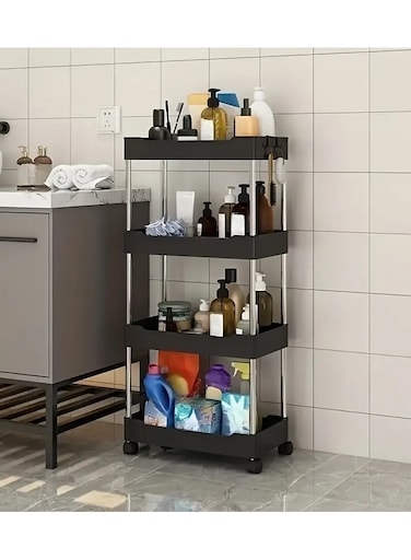 منظم عربة التخزين متعددة الطبقات والمتحركة لدينا هو حلا متعدد الاستخدامات وملائم للحفاظ على حمامك، مطبخك، مكتبك أو غرفة الغسيل منظمة ومرتبة بفضل هوكسها الأربعة وعجلاتها. يمكن نقل هذه العربة بسهولة من مكان إلى آخر، ثم يمكن قفلها بإحكام في مكانها للحصول على استقرار.