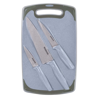 تتضمن المجموعة أيضًا لوح تقطيع مثالي لتحضير المكونات. قم بترقية مطبخك باستخدام مجموعة السكاكين متعددة الاستخدامات والأنيقة.