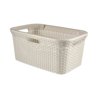 مصنوعة من البلاستيك المتين مع لمسة نهائية من الروطان، هذه السلة قوية وجذابة. تتميز بسعة كبيرة تبلغ 45 لترًا مما يسمح لك بوضع الكثير من الملابس بداخلها.