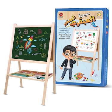 تم تصميم سبورة العبقري الصغير من سندس لتكون على الوجهين سبورة طباشير ولوحة بيضاء. يوفر هذا التصميم المطور العديد من الخيارات للإبداع، ويسمح أيضًا لاثنين من الفنانين الناشئين بابتكار تحفهم الفنية في نفس الوقت. ممتعة وتعليمية!