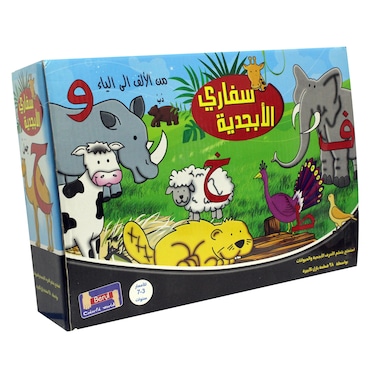- A jumbo floor puzzle that teaches children the Arabic alphabet from “Aleph” to “Ya” illustrated by 28 different animals. Suggested game play and instructions in Arabic language.
