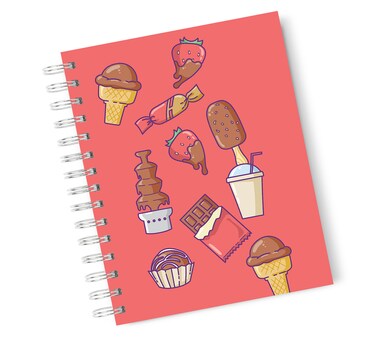 مفكرة بغلاف مقوى لطيف آيس كريم شوكولاتة مع ورق عالي الجودة بحجم A5