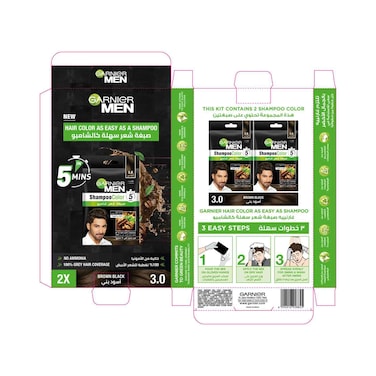 غارنييه شامبو صبغة الشعر للرجال - 1.0 أسود طبيعي حزمة من 2