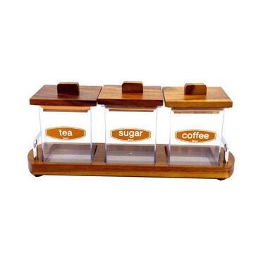 بيلي طقم علب شاي وسكر و قهوه شفاف/بني 3 قطع