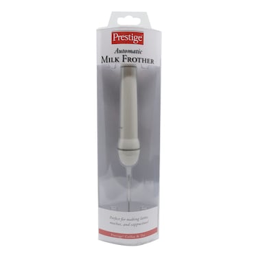 تُعد ماكينة صنع رغوة الحليب الأوتوماتيكية من برستيج باللون الأبيض إضافة أنيقة لأي مطبخ.