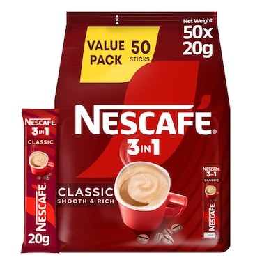 نسكافيه كلاسيك 3 في 1 قهوة ناعمة وغنية 20 غرام حزمة من 50