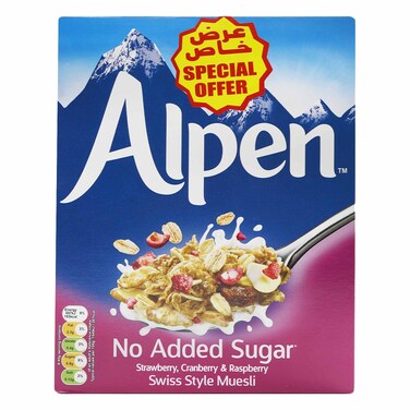 ألبين أوريجينال سويس ستايل موسلي بدون سكر مضاف بنكهة فراولة توت عليق وتوت بري 560 غرام