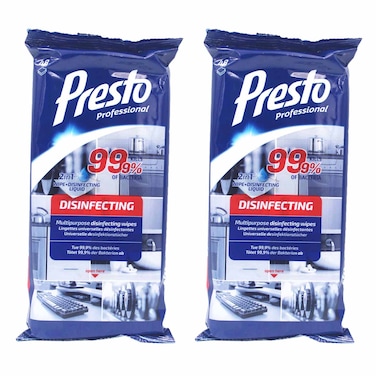 بريستو بروفيشيونال 2 في 1 مناديل مبللة وسائل تنظيف وتعقيم 48 منديل مبلل حزمة من 2 - أبيض