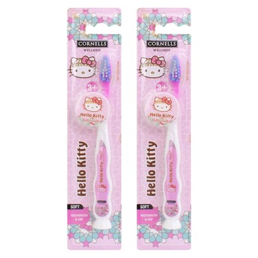 كورنلز ويلنس فرشاة أسنان هلو كيتي ناعمة مع غطاء متعددة الألوان قطعتان