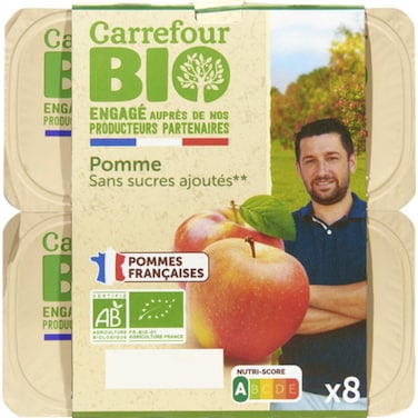 كارفور بيو كومبوت التفاح العضوي 100 غرام حزمة من 8