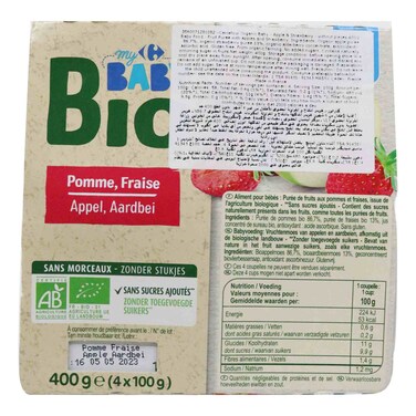 كارفور بيبي بيو كومبوت التفاح والفراولة 100 غرام حزمة من 4