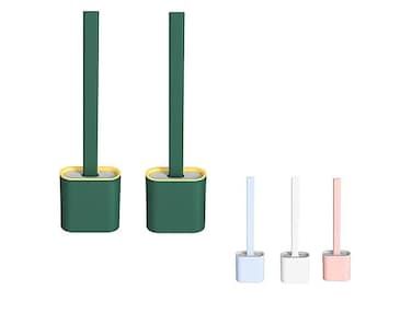 Aiwanto 2 Pcs Long Handle Toilet Brush Effortless Silicone Long Handle Toilet Brush with Holder& Seamless Hook Toilet Cleaning Bowl Brush Set (Random Colors)