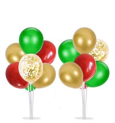 مجموعة بالونات حفلات الكريسماس من قطعتين مع 14 عصا ، 14 كوب ، 2 قاعدة ، 14 بالون لتزيين الكريسماس
