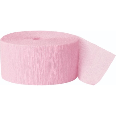 - Add a colorful touch to your party with our Pastel Pink Crepe Streamer. Dangle from the ceiling or drape over tables and chairs for added effect. Can also be used for Arts & crafts! Package contains one roll of streamer Size L24.6m x W4.45cm