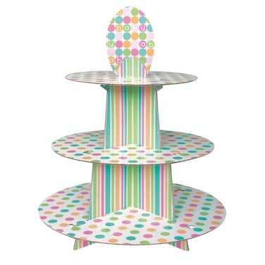 - This sweet Pastel Baby Shower Cupcake Stand is a perfect way to display your bite-size confections. It holds up to 18 regular-sized cupcake or 24 miniature cupcakes as well as other small baked goods like cookies and brownies. Stripes and polka dots in a variety of pastel shades decorate this sweet cupcake tree, making it a delightful addition to any baby shower, especially a gender neutral baby shower or twin baby shower. For best results, be sure to read the included instructions before assembling.