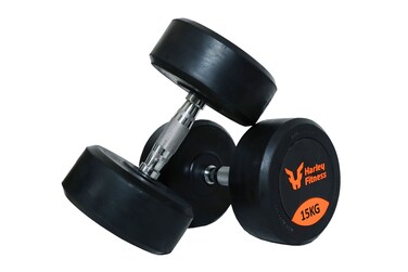 HARLEY FITNESS 15.00KG PREMIUM GENIUNE RUBBER COATED ROUND DUMBBELL - PAIR