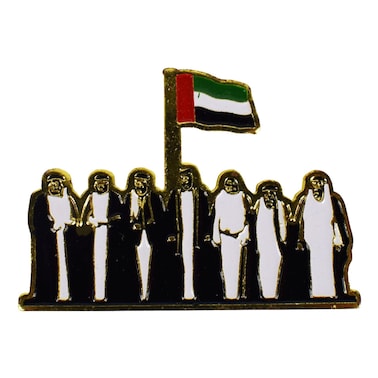 تم تصميم بروش أهلاً بطابع اليوم الوطني لدولة الإمارات العربية المتحدة متعدد الألوان بدقة مع الاهتمام بالتفاصيل. يعرض التصميم المعقد الرموز المميزة لدولة الإمارات العربية المتحدة، مثل علم الإمارات العربية المتحدة والصقر وأشجار النخيل. إنها قطعة مميزة يمكن ارتداؤها على الملابس أو الحقائب أو القبعات، مما يضيف لمسة من الوطنية إلى أي ملابس.