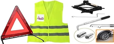 ABBASALI 2 Tonne Scissor Jack + Extendable Wheel Brace Socket Wrench Tyre Repair Kit With Safety Jacket & Safety Traingle For Van SUV Truck