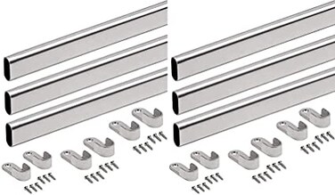 ABBASALI 95 Cm Wardrobe bar Clothes Rod - Closet and Cupboard Organizer Chromed Steel with Fittings - Easy Installation Rail Coat Rack Wall or Clothes Rail - Pack of 6