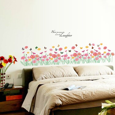 ملصق حائط - كبير 60 × 90 سم - STA -196 - (بارك هذا المنزل مع الحب والضحك - زهور وفراشات)