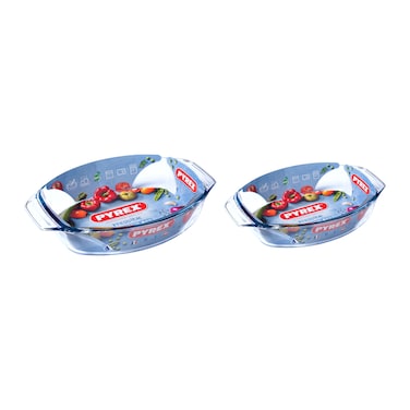 بيركس طقم صواني فرن بيضاوية الشكل - شفاف 35 سم + 40 سم 2 قطع