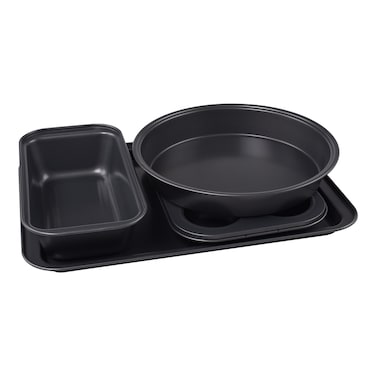 يحتوي على صينية خبز غير لاصقة، وصينية للمافن، وصينية رغيف، وصينية للكيك، جميعها بلون أسود أنيق. صواني الخبز عالية الجودة هذه مصنوعة من الفولاذ الكربوني المتين مما يضمن توزيعًا متساويًا للحرارة للسلع المخبوزة بشكل مثالي في كل مرة.