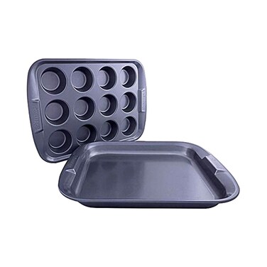 - أصبح صنع الحلويات المطبوخة أسهل وأكثر إمتاعًا للطباخين من جميع المستويات مع مجموعة أدوات الطبخ المصنوعة من الألومنيوم المكونة من قطعتين باللون الرمادي