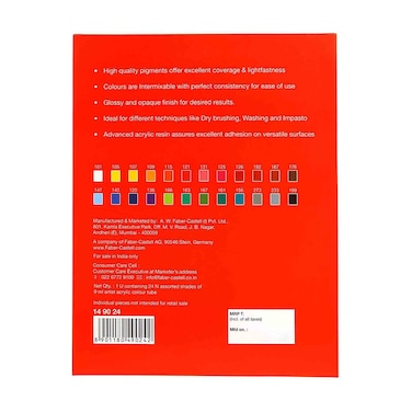 فابر كاستل أكريليك كولور متعدد الألوان 24 قطعة عبارة عن مجموعة من دهانات الأكريليك عالية الجودة التي تأتي في مجموعة متنوعة من الألوان النابضة بالحياة.