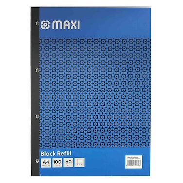 أوراق إعادة التعبئة المخططة بحجمA4 من ماكسي هو دفتر كتابة عالي الجودة يأتي مع 100 ورقة من الورق المخطط.